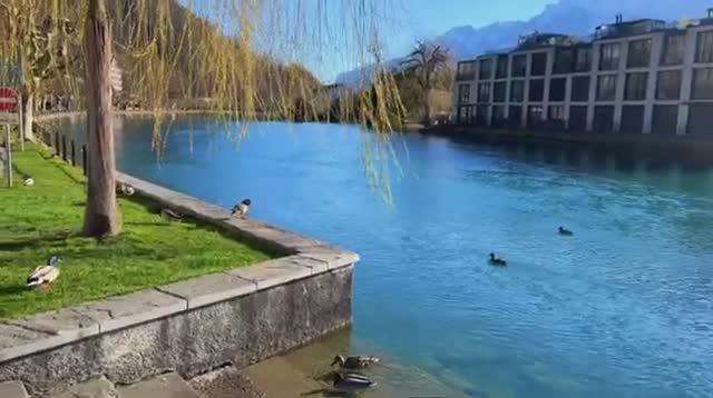 Интерлакен, Швейцария. Прогулка по самому красивому швейцарскому городу в солнечный зимний день