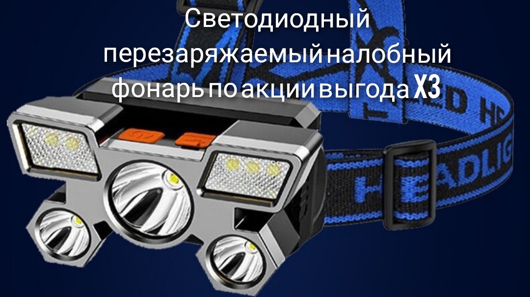 Светодиодный перезаряжаемый налобный фонарь по акции выгода x3