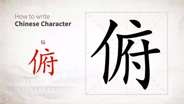 俯 (fǔ) look down; stoop