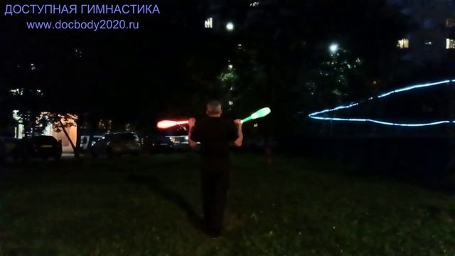 Вечерние упражнения со светящимися булавами