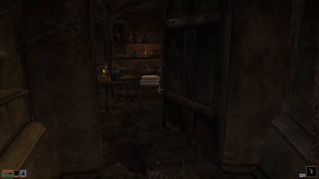 Fedar makes it to the east side of Balmora, across the Odai River, to see the rest of Labor Town. It is there that he meets Drarayne Thelas, who commissioned the Fighter's Guild to deal with the cave rats who have infested her home. Don't worry -- Fedar will save your pillows! After that, Fedar takes a nap in his room in the Fighter's Guild and ascends to level 6. Things are moving quickly!