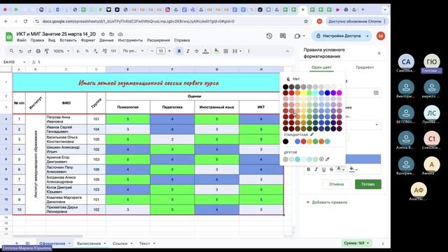 ИКТ и МИГ Занятие Google Таблицы 25_28 марта 2025