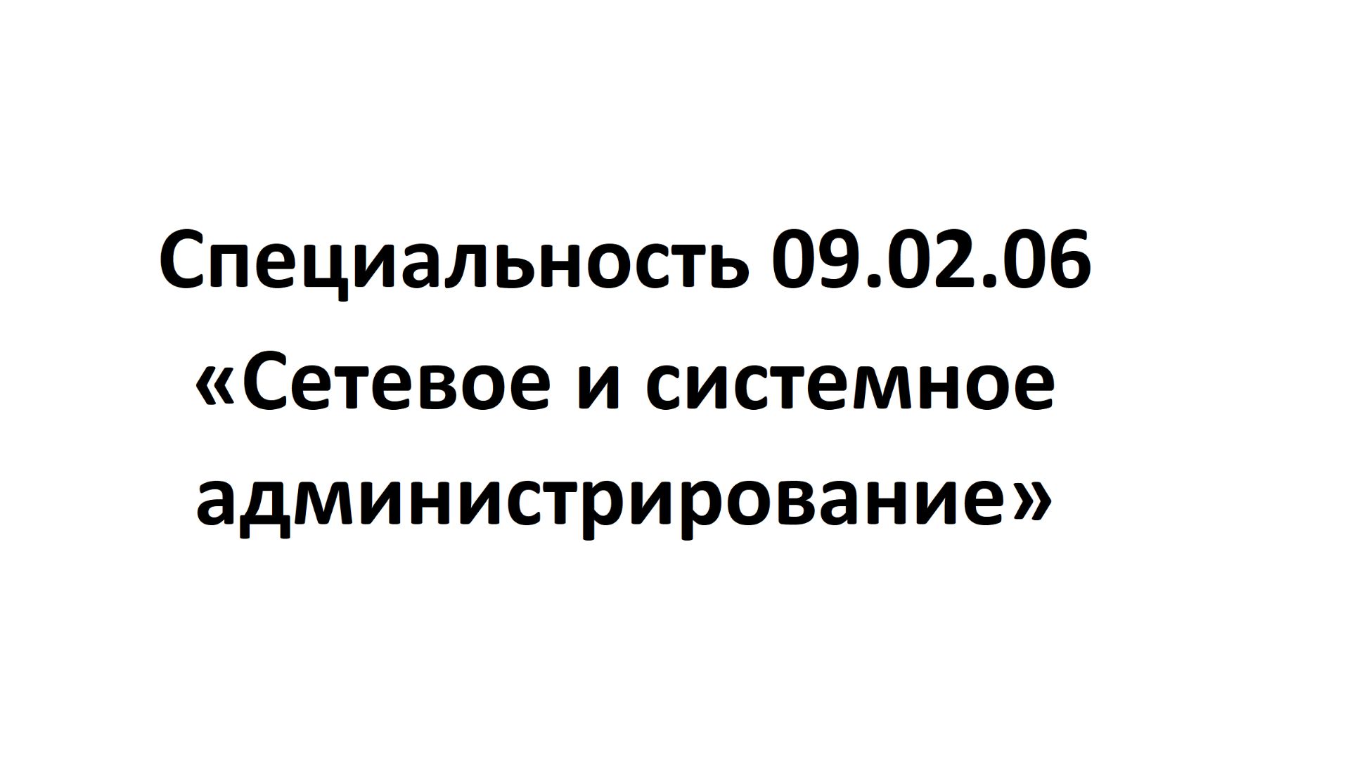 Специальность 09.02.06 «Сетевое и системное администрирование»