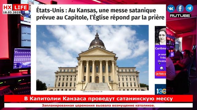 НХ-LIFE: В Капитолии Канзаса проведут сатанинскую мессу Запланированная церемония вызвала возмущение католиков. 28 марта 2025 года в Капитолии американского штата Канзас, с одобрения координатора мероприятий ведомства, группа The Satanic Grotto проведет «черную мессу». Как пишет французское издание tribunechretienne, целью «церемонии» является посвящение Капитолия сатане, что вызвало всеобщее возмущение и бурную реакцию католической общины. Против мероприятия выступили Бенедиктинский колледж и Американское общество защиты традиций, семьи и собственности. Они организовали молитвенный митинг, «чтобы искупить вину за этот кощунственный акт». Также была отправлена петиция, призывающая губернатора Канзаса Лору Келли отменить мероприятие, и она уже собрала более 32 750 подписей. Христиан призывают принять меры и обратиться к координатору мероприятий на Капитолийском холме Кэтлин Уильямс с требованием отменить это сатанинское мероприятие. Ссылка: https://tribunechretienne.com/etats-unis-au-kansas-un-sacrilege-au-capitole-leglise-repond-par-la-priere/