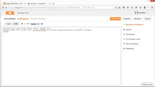 Публикация Blend4Web в Blogger с использованием Google Диск (с субтитрами)