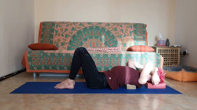 Это можно и нужно делать всем и с любыми проблемами со спиной. Варьируйте набор пропсов. Если спине некомфортно, поднимите опору под головой выше или сделайте опору под лопатками ниже. Исследуйте, вникайте. Перед сном must have, если спина никак не расслабляется за ночь.