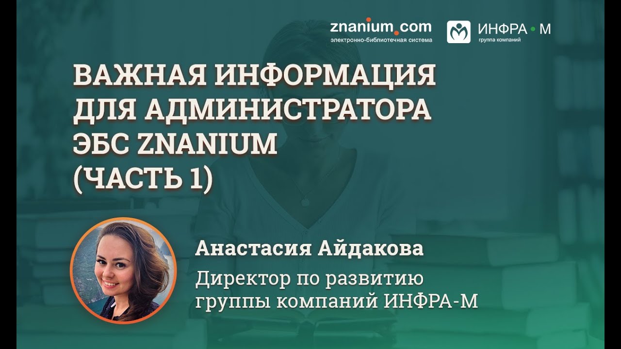 В этом видео с директором по развитию группы компаний ИНФРА-М Анастасией Айдаковой вы узнаете: - как можно регистрировать студентов и преподавателей и почему регистрация важна; - чем отличаются права доступа для студента, преподавателя и администратора; - как работать в ЭБС (поиск, каталоги, копирование информации).