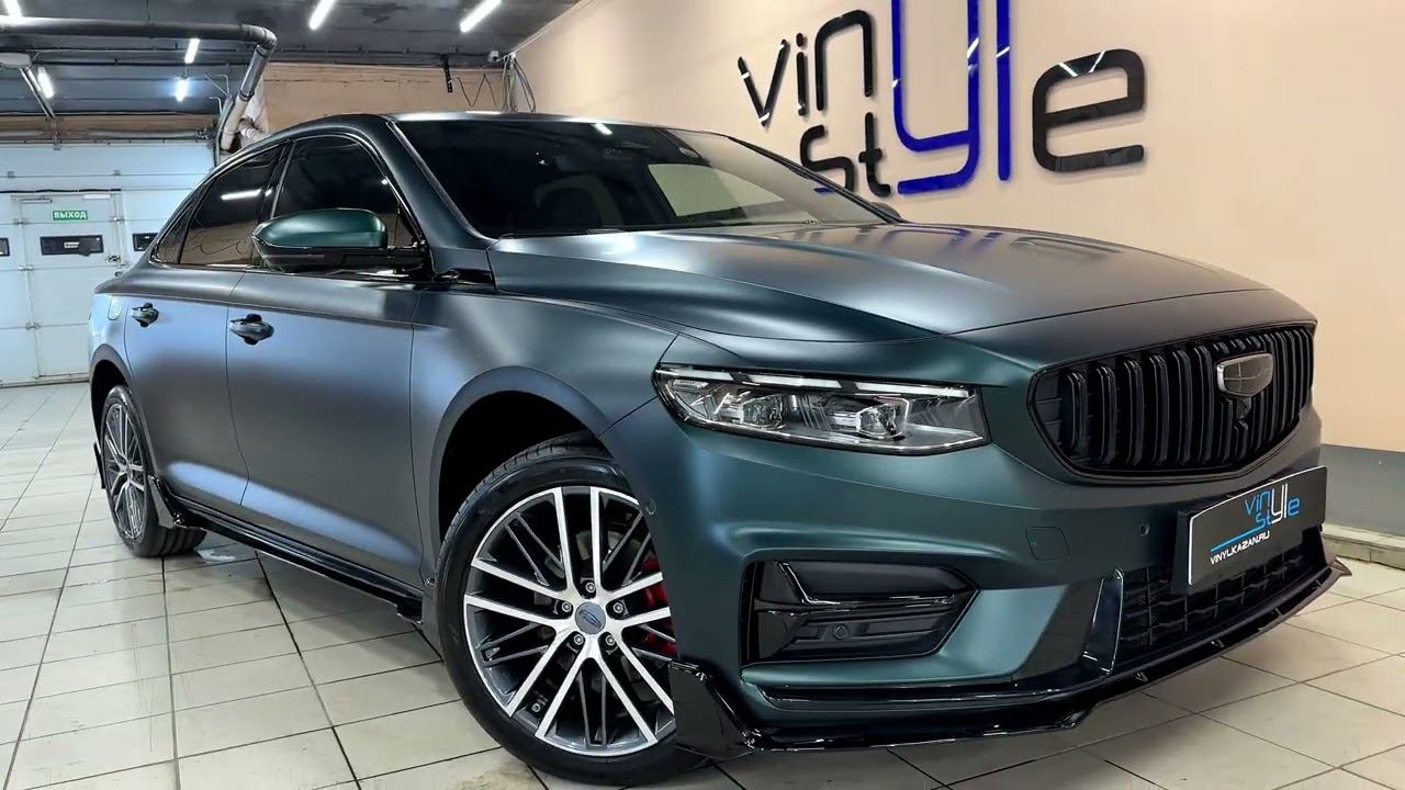 https://vinylkazan.ru/ Geely Preface Бронирование кузова матовой полиуретановой плёнкой. Бронирование лобового стекла. Бронирование передних фар глянцевым полиуретаном, задних фонарей — тонирующим. Полный антихром. Решётка, клыки на переднем бампере, вставки на ручках, под зеркалами, нижние молдинги на дверях, сабля и насадки выхлопа покрашены; молдинги вокруг стёкол оклеены чёрной глянцевой плёнкой. Изготовлен комплект ворсовых ковров в 2 ряда + багажник. Установлена защитная сетка в бампер.