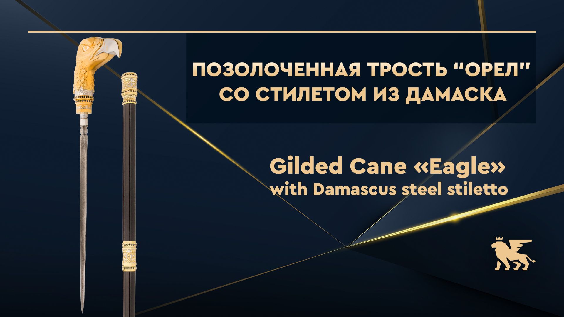 Трость позолоченная «Орел» со стилетом из дамасской стали