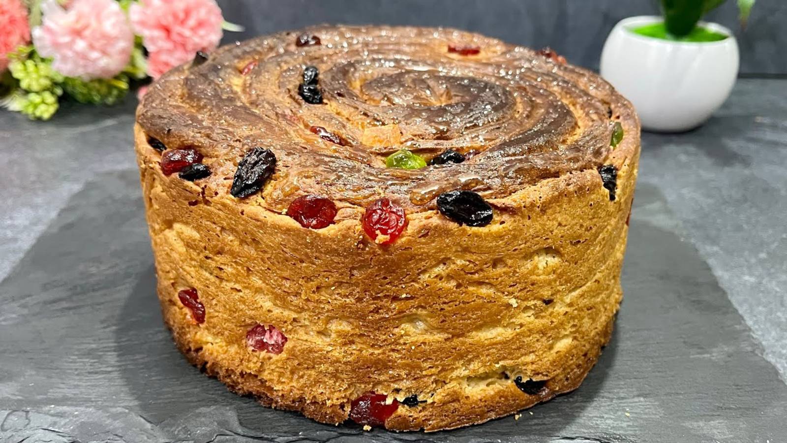 Диаметр кольца 18 см Тесто 450 гр муки 50 мл растопленного сливочного масла 100 гр сахара 2 яйца 1/3 ч.ложка соли 120 мл молока 8 гр сухих дрожжей (24 гр живых) Для сиропа 100 мл воды 100 гр сахара 50 мл коньяка или Рома Начинка 100 гр изюма 100 гр цукатов 80 гр сливочного масла Для покрытия 30 гр жидкого мёда #паска #кулич #пасха2025