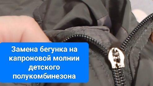 Замена собачки на капроновой молнии детского полукомбинезона.