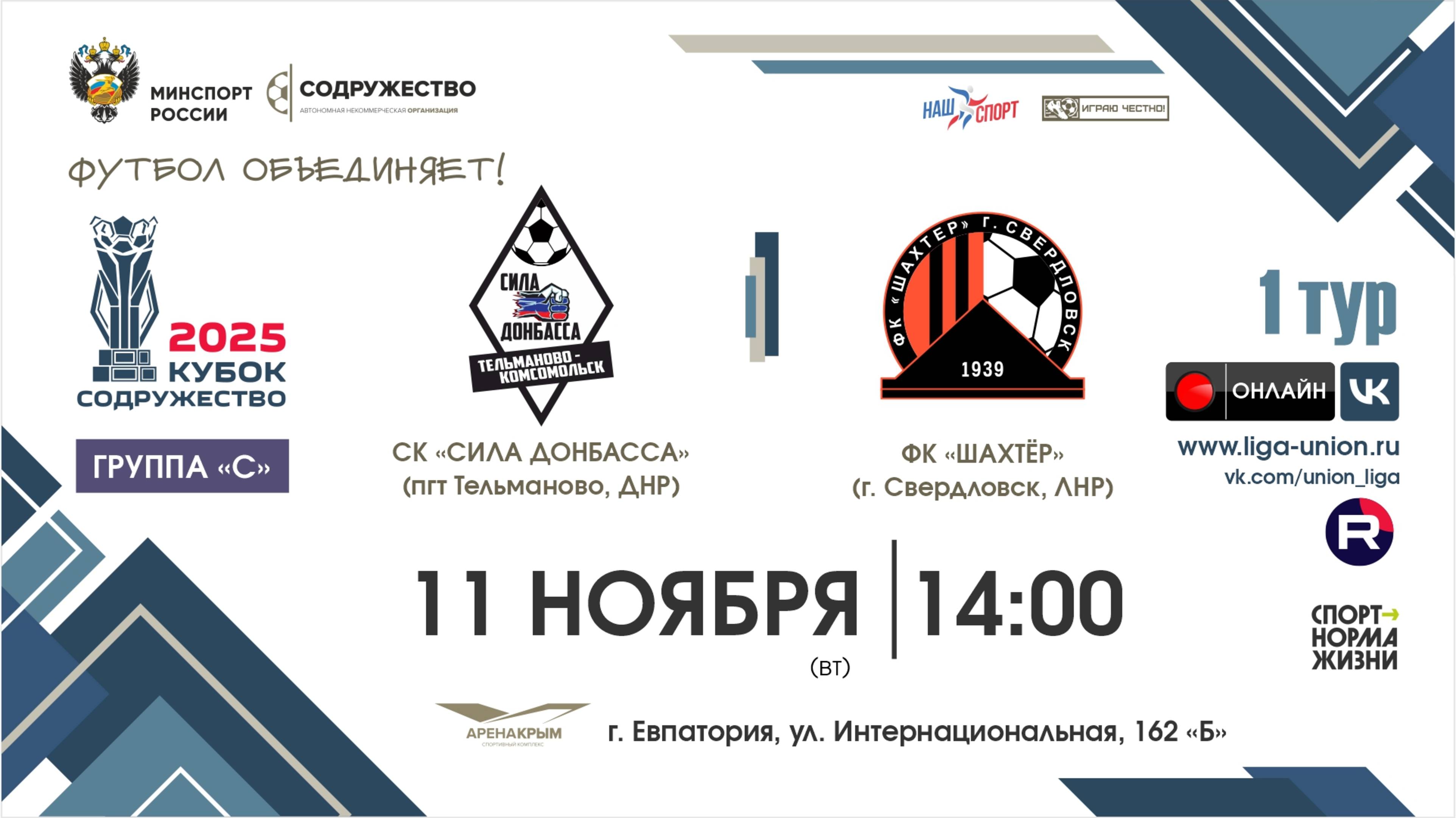 II Кубок "Содружество" | 1 тур «С»| СК "Сила Донбасса" (Донецк) – ФК "Шахтёр" (Свердловск) |11.11.25