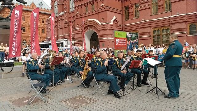 Оркестр Московского высшего общевойскового командного училища Минобороны РФ во время выступления в рамках программы "Военные оркестры в парках" у стен ГИМ 16.07.2022