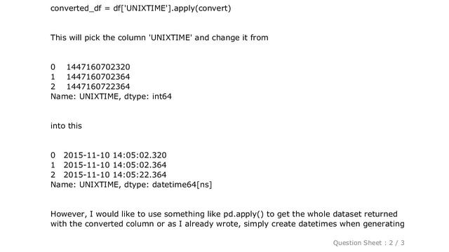 Pandas : Pandas converting row with unix timestamp (in milliseconds) to datetime [ Beautify Your Computer : https://www.hows.tech/p/recommended.html ] Pandas : Pandas converting row with unix timestamp (in milliseconds) to datetime Note: The information provided in this video is as it is with no modifications. Thanks to many people who made this project happen. Disclaimer: All information is provided as it is with no warranty of any kind. Content is licensed under CC BY SA 2.5 and CC BY SA 3.0. Question / answer owners are mentioned in the video. Trademarks are property of respective owners and stackexchange. Information credits to stackoverflow, stackexchange network and user contributions. If there any issues, contact us on - htfyc dot hows dot tech #Pandas:Pandasconvertingrowwithunixtimestamp(inmilliseconds)todatetime #Pandas #: #Pandas #converting #row #with #unix #timestamp #(in #milliseconds) #to #datetime Guide : [ Pandas : Pandas converting row with unix timestamp (in milliseconds) to datetime ]