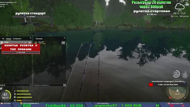 Поддержка донатом https://new.donatepay.ru/@1032463 Альтернативный донат https://www.donationalerts.com/r/kalyamba11 5536913964533059 карта Тинькоф Если стрим лагает,смотри стрим на трово https://trovo.live/s/Kalyamba_na_Ribalke Мой ВК - https://vk.com/kalyantv НИК в игре kalyan11 НАШ ДИСКОРД СЕРВЕР https://discord.gg/4ZzSQkQtsK Заказ водоема на 1 час - 500р ( весь стрим 2500р ) Модерка на канале 1200р ( каждая следующая на 100р больше) Озвучка доната на 40р,50р,100р,200р,300р,500р,1000р ✅Призы в рулетке "ЗОЛОТАЯ" ✔ ЗОЛОТО ✔ ПРЕМ ✔ КАТУШКИ РАПТОР 40, АЗИМУТ 10000, СИЛЬВЕР 80, ТАЙГА с 30 ✔ ПАЛКИ ПИЛКЕРНАЯ, ДОНКА МОРСКИЕ, ✔ РОД ПОД, СТУЛЬЯ ✅Призы в рулетке СТАНДАРТ : ✔ катушка "РАПТОР 40" ✔ катушка "АЗИМУТ 10000" ✔ катушка "ТАЙГА С30, С40," ✔ катушки 60 для медного ( ЭВИИ, НАТОРЫ, ГОЛДА, и тд) ✔ ПИЛКЕРНОЕ УДИЛИЩЕ КОРОЛЕВА ОКЕАНА ✔ Морское Донное удилище ✔ прем ( 3, 7, 30 дней) ✔ золото ( 1, 3, 5, 10, 20 ,50) ✔ билет на море ( 1, 3, 5 дней) ✔ голд наживка и др. ✅Призы в рулетке "СТАРТОВАЯ" ✔ катушка "silver80" ✔ катушка "БЕЛЫЙ КАЛИБР" ✔ катушка "Черный калибр" ✔ катушка "Протон" ✔ катушка "Нарга 6000" ✔ Набор Фидерист и спинингист ✔ Карповик Фортуна ✔ фидерные удилища ✔ прем, золото, алкашка, наживки и тд P.s Рулетка это не казино, а награда за поддержку стримера. Вечный ТОП ПОДДЕРЖКИ (11.05.2024) 1. Dimon_pokemonchik 119 784 2. Interceptor 75 508 3. Skreb79 71 261 4. une personne 68 619 5. Нарвал77 31 550