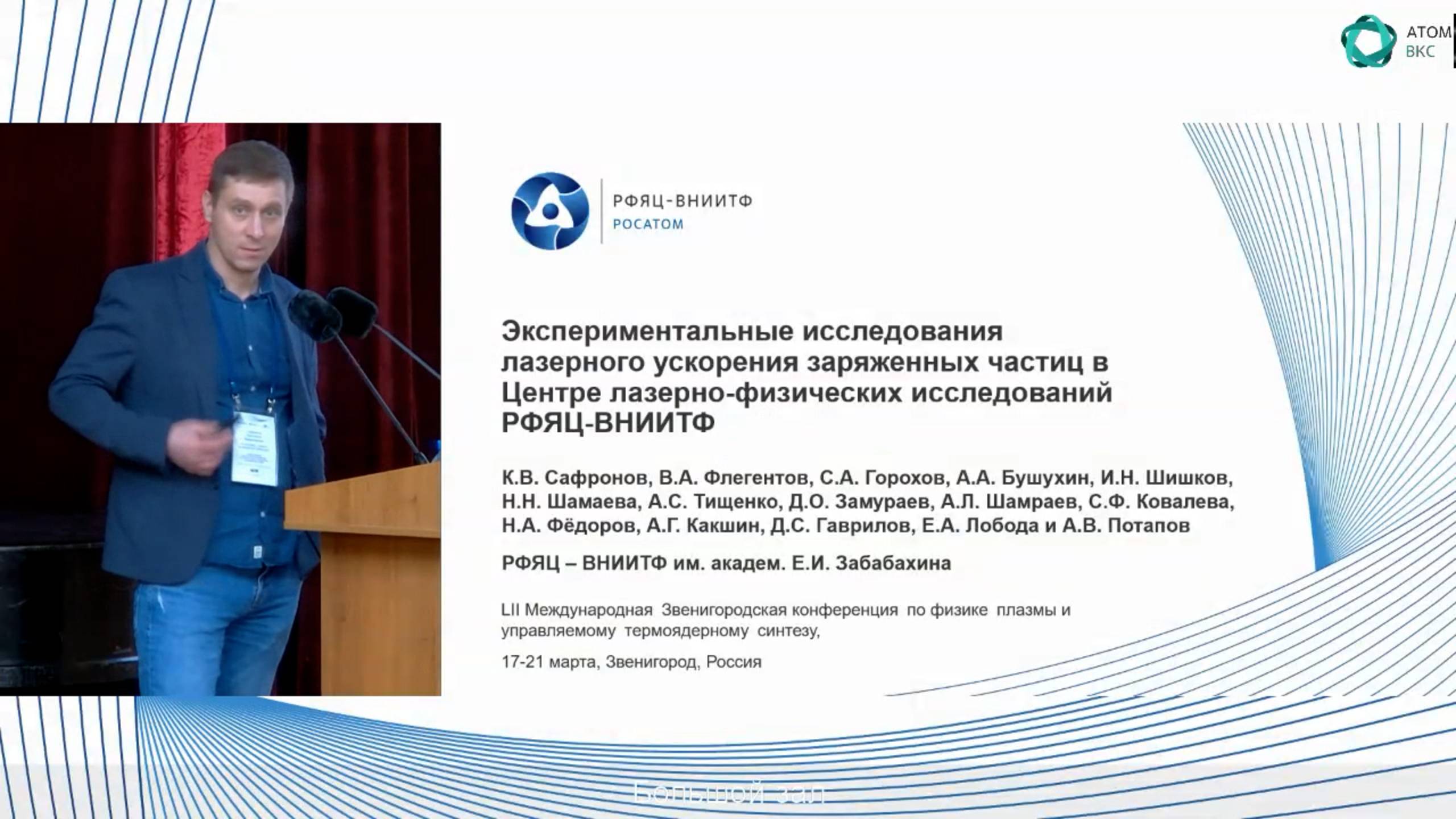 Эксперименты по лазерному ускорению заряженных частиц в центре лазерно-физических исследований РФЯЦ-ВНИИТФ Сафронов К.В., Флегентов В.А., Горохов С.А., Бушухин А.А., Шишков И.Н., Шамаева Н.Н., Тищенко А.С., Замураев Д.О., Ковалева С.Ф., Фёдоров Н.А., Какшин А.Г., Гаврилов Д.С., Лобода Е.А., Потапов А.В. (Российский федеральный ядерный центр - Всероссийский НИИ технической физики им. академика Е.И. Забабахина, Снежинск, Россия) НАУЧНО-ДЕЛОВОЙ ПОРТАЛ «АТОМНАЯ ЭНЕРГИЯ 2.0» https://www.atomic-energy.ru СОЦИАЛЬНЫЕ СЕТИ Новости в Telegram: https://t.me/Nuclear_Energy_Russia Атомный чат в Telegram: https://t.me/Open_Nuclear_Chat Сообщество ВКонтакте: https://vk.com/AtomicEnergyRu Дзен Блог: https://dzen.ru/atomic-energy.ru Видеоканал Rutube: https://rutube.ru/channel/24721138/ Видеоканал Youtube: https://www.youtube.com/c/AtomicEnergyRu О ПРОЕКТЕ https://www.atomic-energy.ru/about СОТРУДНИЧЕСТВО И РЕКЛАМА https://www.atomic-energy.ru/partnership