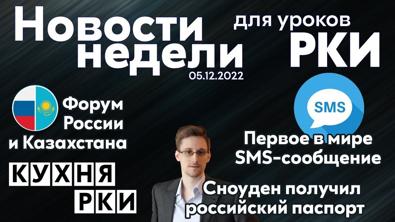 Главные новости недели, адаптированные для иностранцев, изучающих русский язык! В рабочих листах к новостям вы найдете упражнения по аудированию, чтению, говорению, работе с инфографикой, а также узнаете 11 правил цифрового этикета и познакомитесь с сокращениями, которые русские люди используют в мессенджерах в повседневной коммуникации! Скачать рабочий лист к этому выпуску новостей можно по ссылке: https://disk.yandex.ru/i/5UwakFZGxEviQg Инструкция по применению наших рабочих листов: https://youtu.be/n4miEWiFNts Сегодня вы узнаете: 00:00 В Оренбурге прошел Форум межрегионального сотрудничества России и Казахстана 04:05 Сноуден получил российский паспорт 05:14 Первое в мире SMS-сообщение отмечает 30-летие Присоединяйтесь к нам в Телеграм, чтобы получать наши материалы первыми! https://t.me/kuhnarki