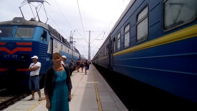 Электровоз ЧС7 - 304 с поездом 281/282 "Хмельницкий - Геническ" прибывает на ст. Геническ. 18.06.2017 г.