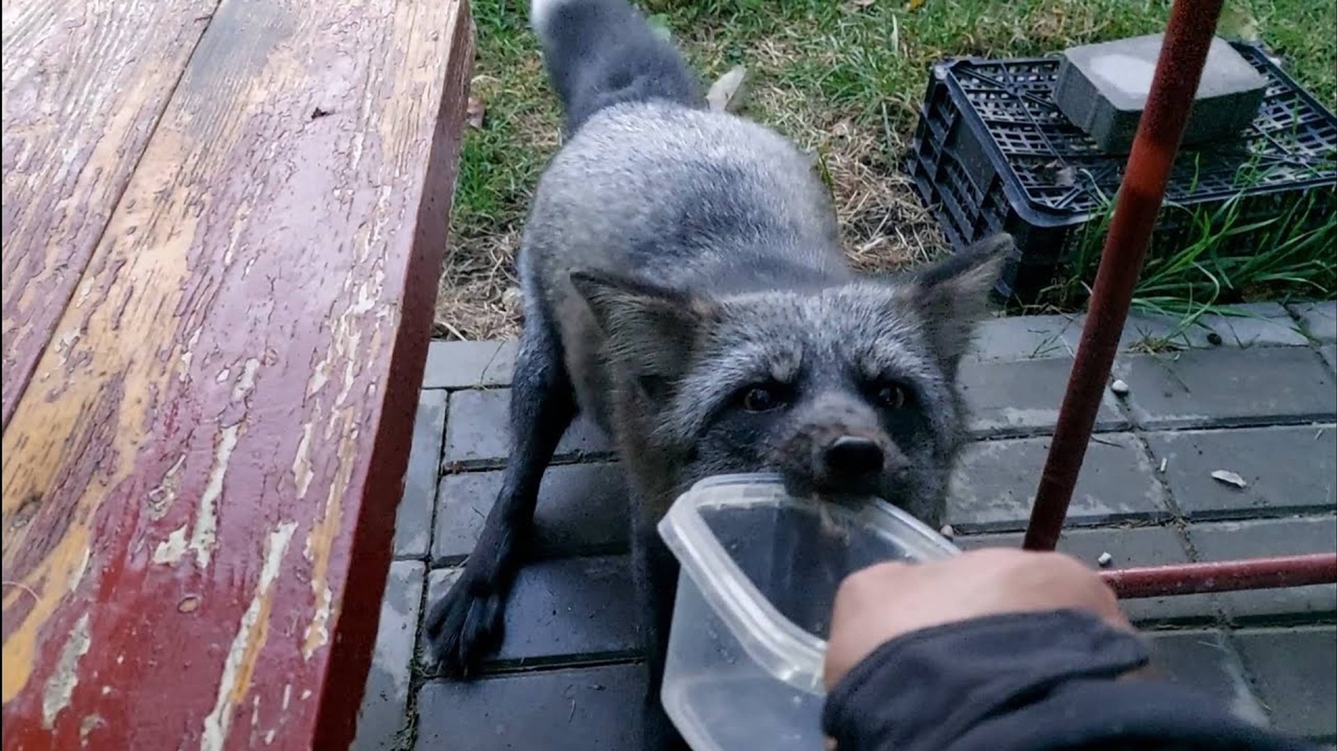 Лиса ест рыбу