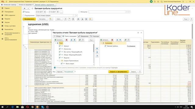 Компания «Кодерлайн» предлагает ознакомиться с роликом «Отчет по валовой прибыли в 1С:Управление торговлей 8. Основные возможности» Ведущий: Егоров Никита Александрович - специалист 1С. Целевая аудитория Руководители, руководители отделов, менеджеры по продажам, специалисты по 1С, финансисты, бухгалтеры. Описание Базовые возможности при формировании отчета по валовой прибыли, принципы вывода информации, принципы отбора и формирования структуры данных. Программа 1) Отчет по продажам, базовый вариант. 2) Структура информации: вывод показателей. 3) Структура информации: отбор информации. 4) Структура информации: дополнительные данные.