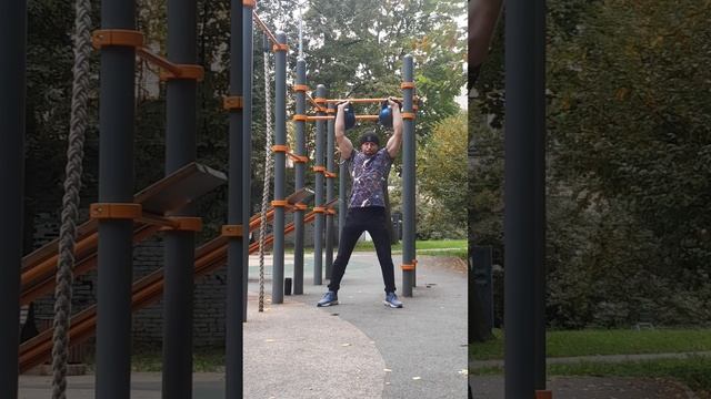 Три комбинации ( турник и гири ) !!! 1) Пирамида из выходов на две и гиревых кластеров ; 2) Связка ( выход на две /подъем с переворотом/ передний динамический вис ) и ( рывок гирь / жим гирь / тяга гирь ) ; 3) Пять выходов на две / пять рывков двух гирь / пять отжиманий от гирь / пять трастеров с гирями ; Эти три комбинации можно выполнять в любой последовательности , лесенкой или кругами , менять количество повторений, отдых между кругами не более 2х минут !!! 😉💪💪💪#офп#физкультура#атлетизм#мотивация#уличнаятренировка#стритворкаут#дворовыйатлетизм#фитнеснаулице#атлетическаягимнастика#силоваявыносливость#турник#гири#выходынадве#подъемспереворотом#переднийвис#жимгирь#рывокгирь#тягагирь#гиревойкластер#гиревойтрастер#дисциплина#упорство#васильевскийостров#василеостровскийрайон#осень#кайф