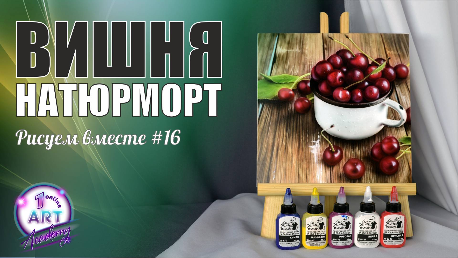 Друзья, всем привет! Сегодняшняя самостоятельная работа - это вишня. Вы можете выбрать любой из трех вариантов. Вишенки - это небольшой, интересный натюрморт, в котором Вам предстоит много работы. Каждая ягодка должна быть четкой и объемной. Для этого используйте опорный трафарет и работайте над светотенью. Нарисуйте вишенку так, чтобы зрителю захотелось ее съесть. Рисуйте не спеша, получайте удовольствие, набивайте руку. Исходники и дополнительные материалы у нас на сайте: https://1onlineartacademy.com/blog/736950 ПРИНЯТЬ УЧАСТИЕ В РИСУЕМ ВМЕСТЕ: ******************************************** Мы приглашаем всех желающих принять участие в нашем проекте, неважно где и когда Вы научились рисовать аэрографом, давайте рисовать вместе. Подробности на нашем сайте: https://1onlineartacademy.com/blog/667720 ******************************************** НАШ МАГАЗИН: -------------------------------------------- Все для аэрографии: https://1onlineartacademy.com/ru_store-all-0 -------------------------------------------- Горячие ссылки: --- Инструкция для новичков: https://1onlineartacademy.com/ru_stepwizard Инстаграм: http://instagram.com/art_bright_studio/ VK: http://vk.com/artbri FB: http://www.facebook.com/1OnlineArtAcademy --- Сайт Арт Академии: http://www.1OnlineArtAcademy.com/ Задайте свой вопрос на сайте или по телефонам: 8 (800) 707-59-13, +7 (495) 123-37-55