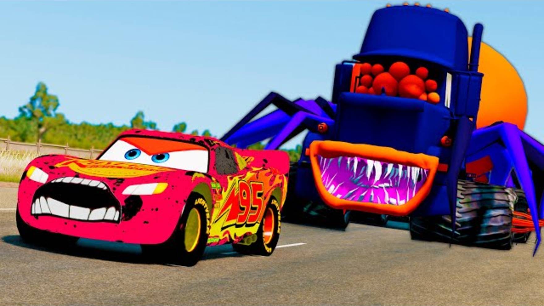 Молния Маккуин: УЖАС в стиле СПАЙДЕР-МАКА! Полицейская погоня и нападение монстров на базу в BeamNG.Drive