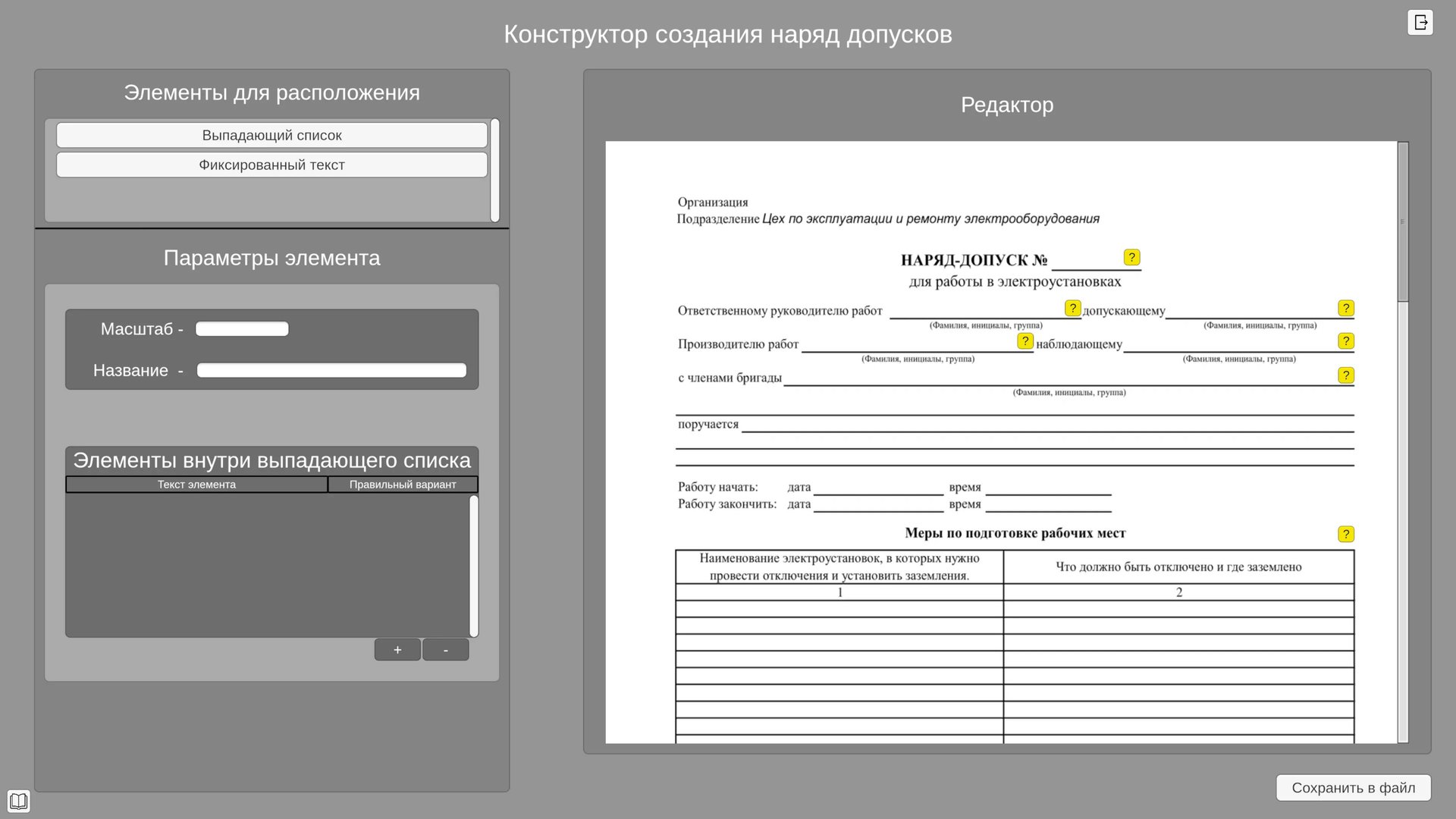 Компьютерный тренажер "Оформление наряд-допусков"