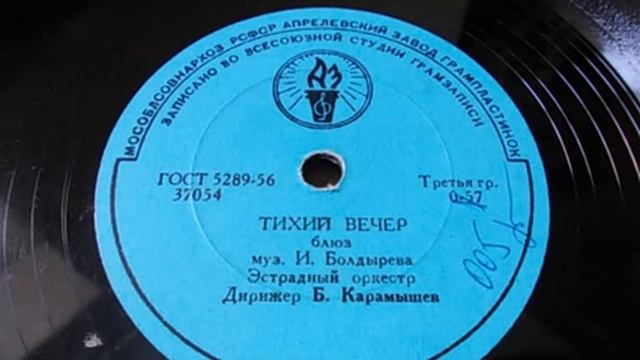 37054 ТИХИЙ ВЕЧЕР, муз. И. Болдырева, исп. Эстрадный оркестр п-у Б. П. Карамышева, запись 1961 г. (Пластинка из моей коллекции).