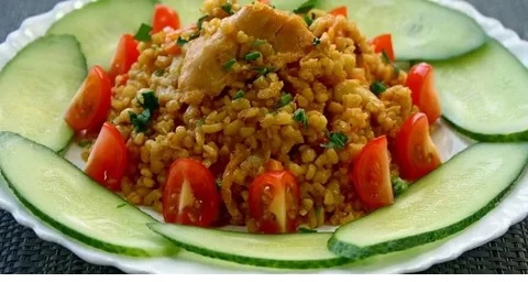 До недавних пор при выборе круп в магазине булгур я обходила стороной. Я и подумать не могла, что эта крупа настолько вкусная! Сейчас она еженедельно появляется в нашем повседневном меню. Одно из полюбившихся блюд - булгур с курицей, овощами и томатной пастой. Обжариваем куриное филе с морковью и луком, соединяем с булгуром, томатной пастой и приправой, заливаем водой и томим под крышкой.