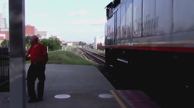 Мощные тепловозы тащат красивые пассажирские вагоны по железнодорожной транспортной системе Америки