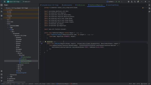 #биомымайнкрафт #созданиебиомов #minecraftбиомы #terrablender #моддингбиомов #minecraftforge #forge1_20_1 #разработкамодов #minecraftмоддинг #урокимоддинга #javaмоды #minecraftпрограммирование #созданиемодов #биомывмайнкрафт #terrablenderтуториал #настройкабиомов #minecraftкод #моддермайнкрафт Биомы в Minecraft — это увлекательная тема для моддинга! В этом уроке разберем создание кастомных биомов с использованием Terra Blender. Узнаем, как работать с библиотеками и настраивать генерацию мира без сложных JSON-файлов. ___________________________________________ Репозиторий и ветка https://github.com/ZhuckovAlex/Lesson-1.20.1-Forge/tree/lesson_24 Команда разработки модов, тут вы можете с нами разрабатывать проекты. https://vk.com/imaginaerum_team Группа VK уроков https://vk.com/tutorial_modding_minecraft Группа ТГ уроков https://t.me/imaginaeum_lessons Группа ТГ comunity https://t.me/imaginaerum_comunity ___________________________________________ 💎 Поддержите наш Minecraft-мир! 💎 Ваш вклад помогает: ✨ Создавать крутые моды для игры ⚒️ Развивать студию моддинга 🌍 Улучшать выживание на сервере 📜 Способы поддержки: 📌 Реквизиты: Р/С 40817810352096448617 📌 DonationAlerts: https://donationalerts.com/r/sanberdir 📌 Boosty: https://boosty.to/sanberdir/single-payment/donation/289632/target?share=target_link Каждая поддержка — это новый блок в строительстве нашего мира! Спасибо вам! ❤️ ___________________________________________
