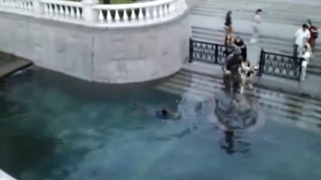 Пьяный чел нырнул в фонтан на охотке