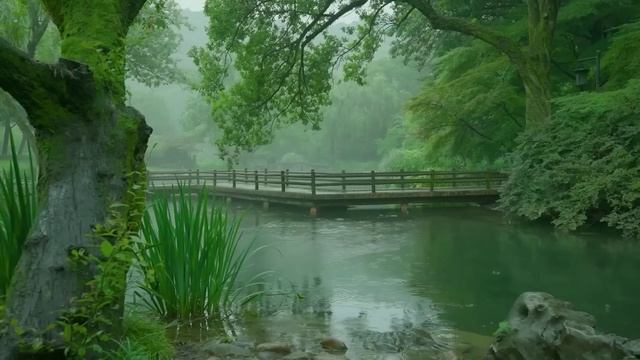 🌧️💧 На красивой речушке льет дождь , спи, расслабляйся, медитируй, АСМР