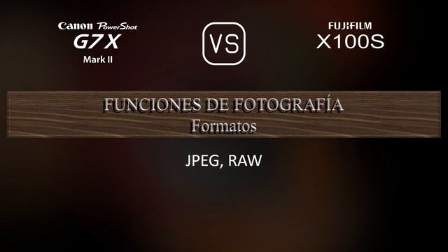 Este video brinda una descripción general de las funciones de la Canon PowerShot G7 X Mark II y la Fujifilm X100S en una comparación de especificaciones (comparison of specifications). Gracias por ver. Si te ha gustado este vídeo y lo has encontrado informativo, no olvides suscribirte para ver más contenido. 00:25 LANZAMIENTO 00:33 CUERPO 00:40 SENSOR 01:01 IMAGEN 01:16 ÓPTICA Y ENFOQUE 01:55 MONITOR 02:13 VISOR 02:27 FUNCIONES DE FOTOGRAFÍA 03:20 FUNCIONES DE VIDEOGRAFÍA 03:35 ALMACENAMIENTO 03:38 CONECTIVIDAD 04:03 ESPECIFICACIONES FÍSICAS 04:21 OTRAS FUNCIONES