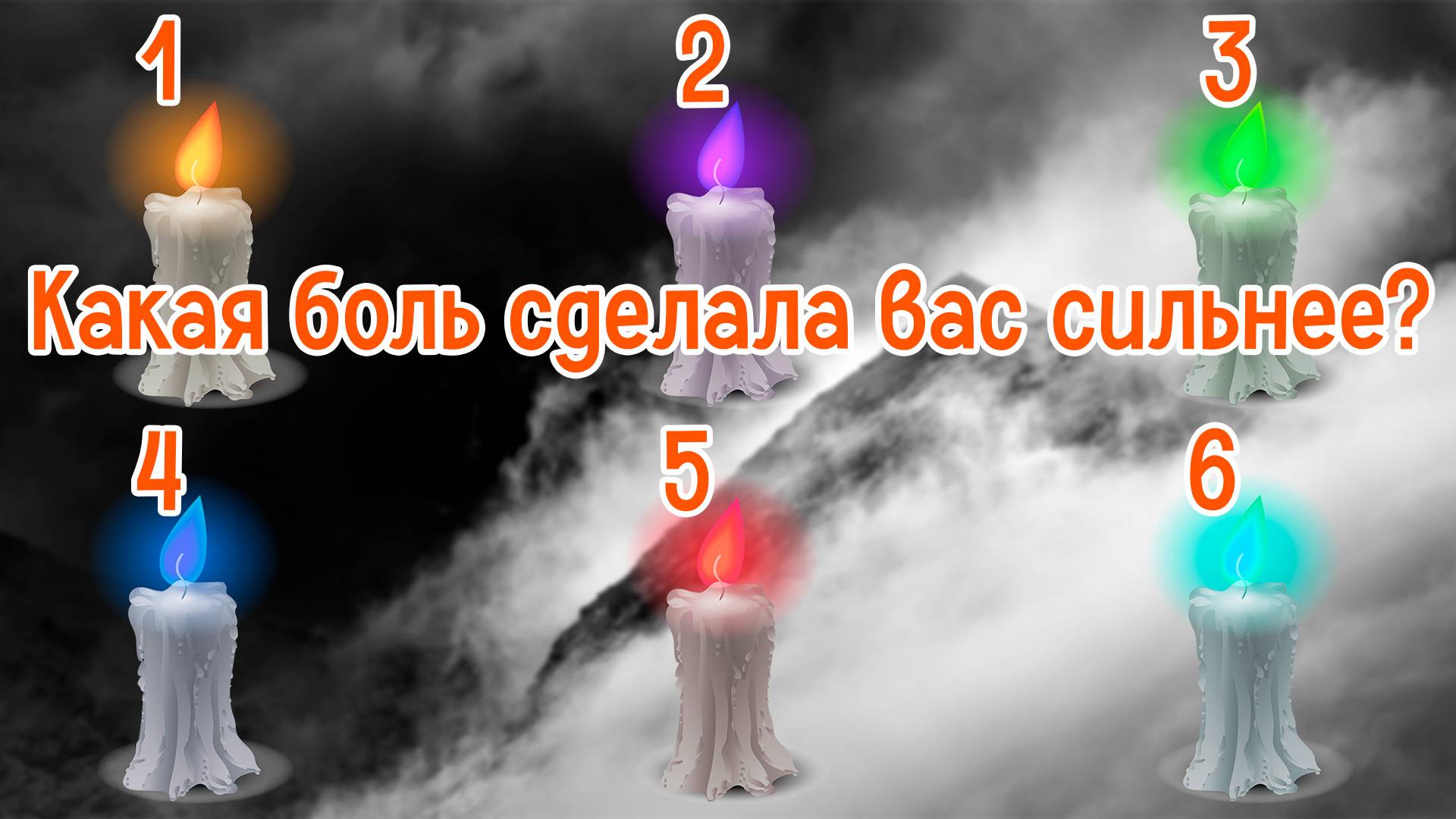 Дорогие друзья, добро пожаловать в этот мистический уголок, где каждая ваша мысль и переживание обретает глубокий смысл. Сегодня я приглашаю вас на удивительное путешествие вглубь себя. Вместе мы откроем скрытые грани вашей души и узнаем, какая боль сделала вас сильнее. Перед вами шесть свечей, каждая из которых символизирует особую энергию. Выберите ДВЕ , и я расскажу вам, что за сила скрывается за вашей болью.