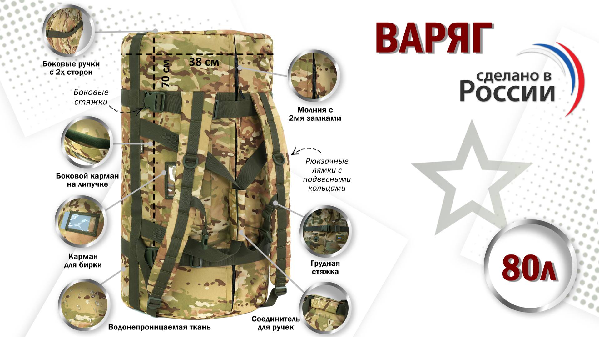 Заказать баул армейский "Варяг, цвет - мультикам, 80 литров, а также другие аксессуары можно на официальном сайте компании А&Р Групп: https://ap-group-llc.ru/ Возможность изготовления товаров по индивидуальным размерам и проектам. Гарантия на продукцию 1 год. Доставка осуществляется по всей России, а также в Казахстан и Беларусь. _______________________________________________________________________ Мы ВКонтакте: https://vk.com/apgroup Мы на Wildberries: https://www.wildberries.ru/seller/198927 Мы на Ozon: https://www.ozon.ru/brand/a-p-87358243/ Мы на Я.Маркете: https://market.yandex.ru/business--a-r-grupp-rossiiskii-proizvoditel-aksessuarov/864809