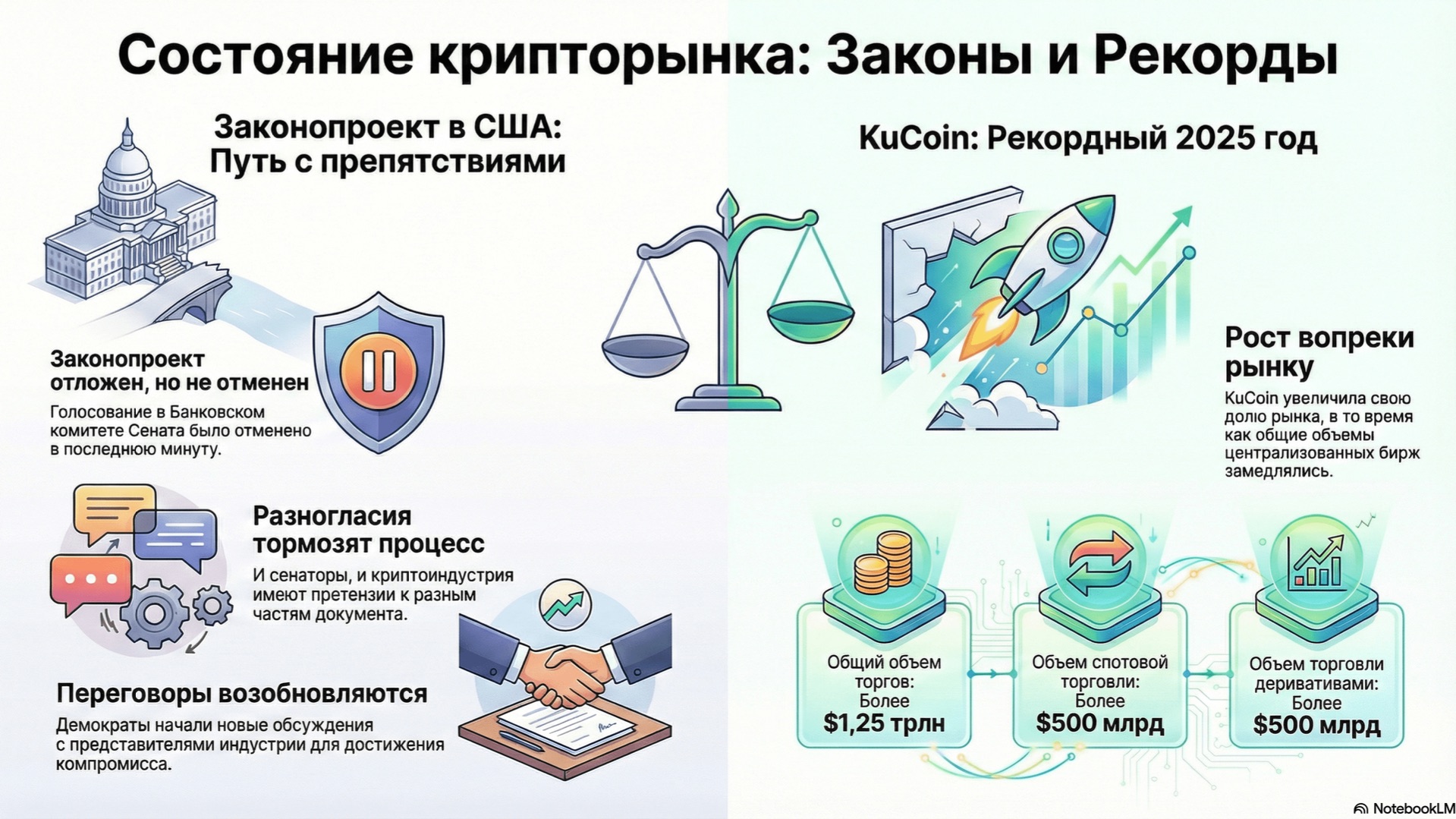 Документ анализирует состояние предлагаемого законопроекта о структуре крипторынка в США, который недавно был отозван Банковским комитетом Сената за несколько часов до запланированного голосования. Несмотря на эту задержку, законопроект не считается «мертвым», и новое рассмотрение (markup) может быть назначено в ближайшие недели. Отсрочка возникла из-за различных разногласий среди законодателей, включая вопросы по регулированию доходности стейблкоинов и этическому положению, касающемуся связей президента с криптовалютой. Кроме того, двухпартийные сенаторы из другого комитета выразили обеспокоенность по поводу включения в законопроект правовой защиты для разработчиков программного обеспечения. Криптоиндустрия также высказала претензии к таким аспектам, как полномочия, предоставляемые Комиссии по ценным бумагам и биржам, и регулирование децентрализованных финансов. Тем не менее, заинтересованные стороны считают, что законопроект сохраняет импульс, и все вовлеченные стороны активно работают над компромиссами. Ожидается, что Сенатский комитет по сельскому хозяйству также представит свой собственный текст, что может повлиять на окончательную форму законопроекта. Как Банковский комитет, так и представители отрасли участвуют в обсуждениях для обновления проекта текста, что предполагает дальнейшие переговоры и вероятное будущее рассмотрение. #Крипторегулирование #ЗаконопроектОСтруктуреРынка #ПолитикаСША #БанковскийКомитетСената #Стейблкоины #DeFi #Криптозакон #Законодательство #Криптовалюта документ - https://www.coindesk.com/policy/2026/01/17/what-comes-next-state-of-crypto подписаться - https://t.me/arxivpaperu отправить донаты: USDT: 0xAA7B976c6A9A7ccC97A3B55B7fb353b6Cc8D1ef7 BTC: bc1q8972egrt38f5ye5klv3yye0996k2jjsz2zthpr ETH: 0xAA7B976c6A9A7ccC97A3B55B7fb353b6Cc8D1ef7 SOL: DXnz1nd6oVm7evDJk25Z2wFSstEH8mcA1dzWDCVjUj9e создано с помощью NotebookLM