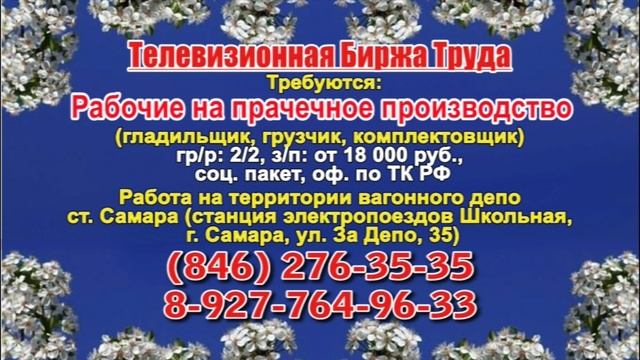 Вакансии и телефоны прямых работодателей в специализированной программе по трудоустройству "Телевизионная Биржа Труда" - г.САМАРА, г.ТОЛЬЯТТИ т/к РЕН-ТВ
