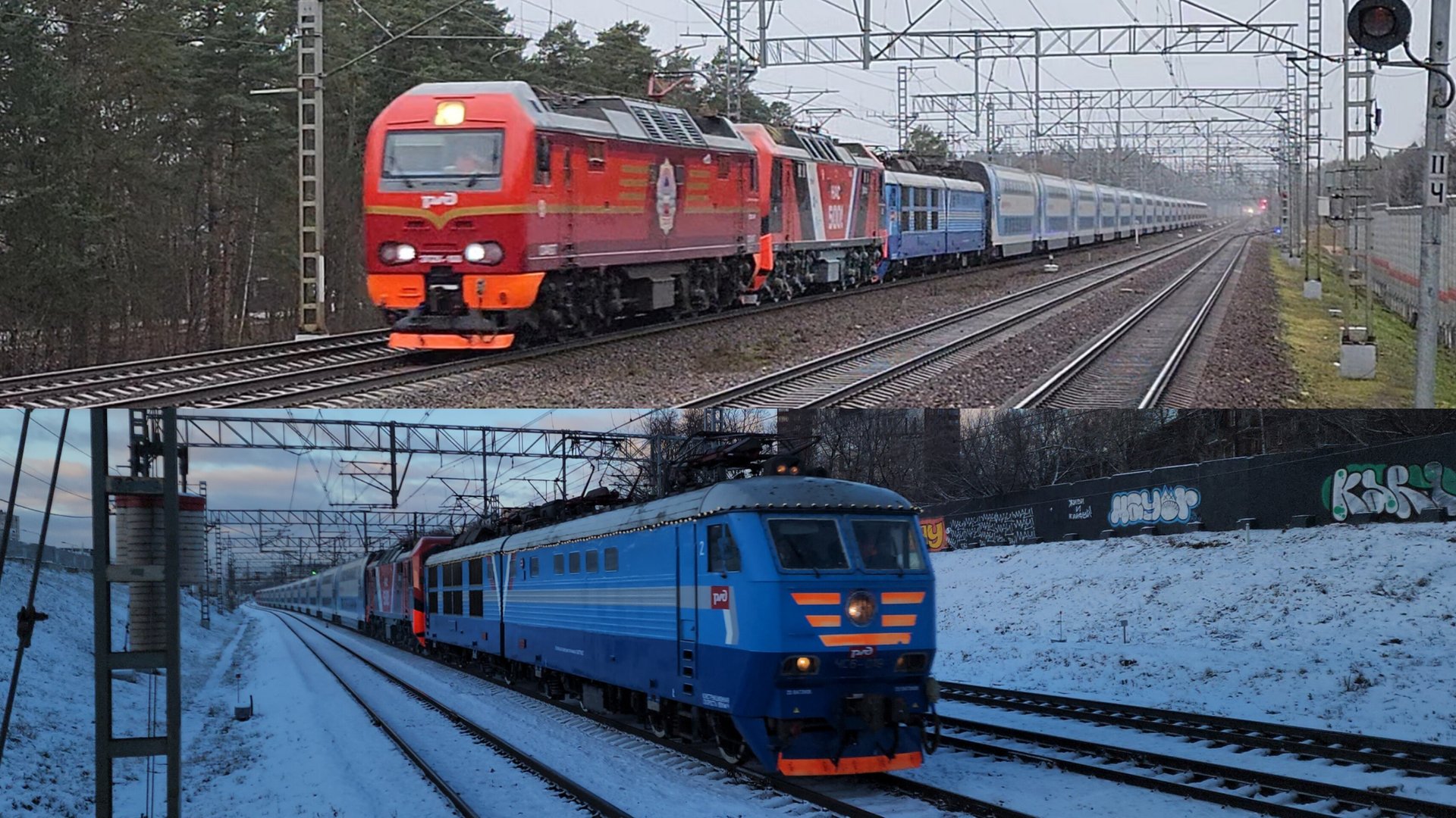 Испытания скоростного поезда Аврора под тягой ЭП2К и ЧС6