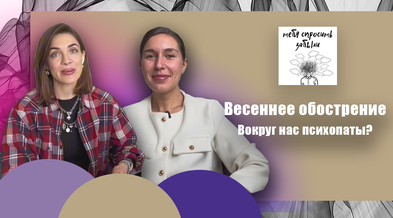 Весеннее обострение. Вокруг нас психопаты? Какие красные флаги нужно учесть в поведении в общении с человеком с психопатической тенденцией? Где можно встретить таких людей и как себя обезопасить? Эту важную тему разобрали в новом выпуске. Подкаст «Тебя спросить забыли». Что разобрали в выпуске: 0:00 – что будет в этом выпуске? 0:47 – что такое психопатические наклонности? 3:21 – психопат живет в каждом из нас? 4:50 – где мы можем встречать людей с такой тенденцией? 6:20 – таким людям надо успеть захватить власть над вами 7:50 – рядом с такими людьми вам будет больно 9:20 – люди с психопатией не эмпатичны 10:52 – у таких людей практически нет друзей 11:47 – кажется, что эти люди могут подобрать к нам любые ключи 14:42 – обращайте внимание на ваши реакции в общении с ними 15:46 – если с вами общаются через призму «Вот как надо!» 18:32 – хорошая нарциссическая часть 21:47 – большая часть людей хорошие 23:52 – наши сценарии жизни 25:24 –фокус внимания – «Я не окей!» 28:05 – все ваши чувства важны Советуем почитать следующие книги на эту тему: -"Психоаналитическая диагностика. Понимание структуры личности в клиническом процессе" Мак-Вильямс Нэнси Посмотреть сериалы на эту тему: -Сериал «Люцифер»; -Сериал «Отыграть назад» Посмотреть выпуск на YouTube: -Осторожно:Собчак - «Счастье любит тишину»: история про колумбийца, ложь и месть Если Вам действительно нужна помощь, мы ждем Вас на личную терапию. Анастасия Седова: https://www.sedovacenter.com/ Анастасия Титаева: https://vk.com/a.titaeva Ссылки на наши каналы: VK: https://vk.com/club223451934 YouTube: https://www.youtube.com/channel/UCHDm-sdu855ztmJ7ZQL8.. Rutube: https://rutube.ru/channel/33048873/