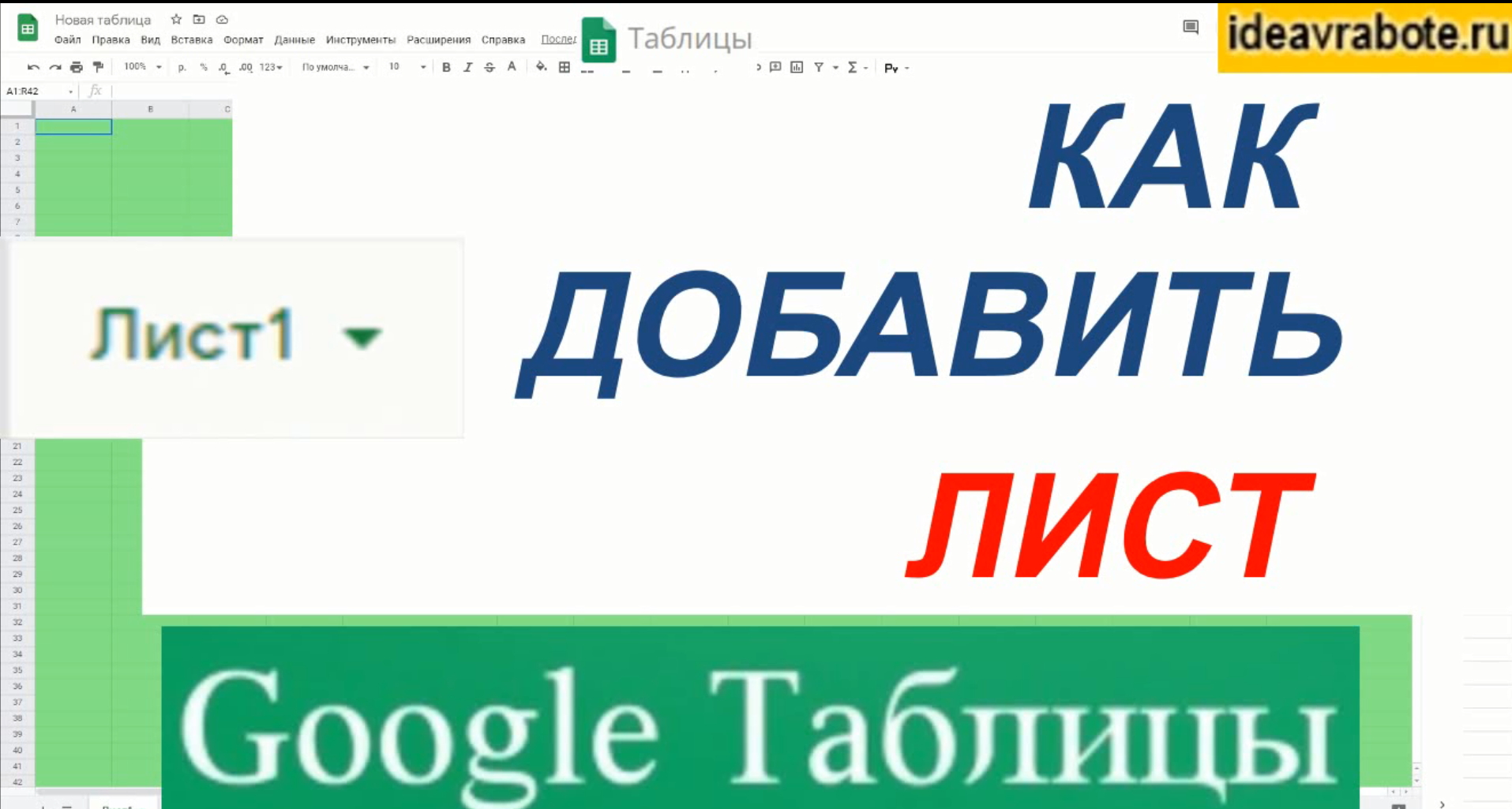 В этом видео показано, как добавить лист в гугл таблицах. Текстовая версия на нашем сайте: https://ideavrabote.ru/