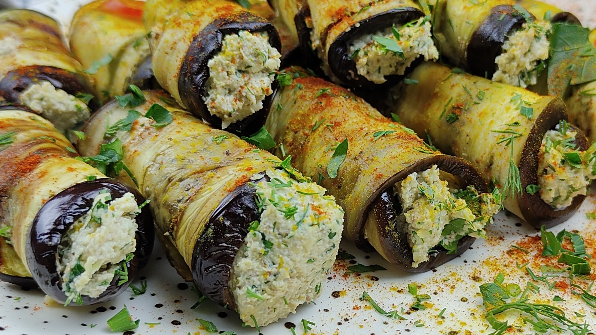 В этом видео приготовлю вкусную и очень аппетитную холодную закуску из баклажанов - это будут пикантные рулетики с орехово-творожной начинкой. Готовится закуска очень легко из доступных ингредиентов. Вкус и польза на одной тарелке! Если вам надоел классический рецепт баклажанов с помидорами, то этот вариант для вас! Вы посмотрите на баклажаны с другой стороны. Рулетики из запеченных баклажанов с пикантной начинкой идеально подходят не только для обеда или ужина в будний день, но и отлично украсят любое праздничное застолье. Приятного аппетита! ИНГРЕДИЕНТЫ: • 2 баклажана • Оливковое масло для жарки • Соль • Черный молотый перец НАЧИНКА: • 100 грамм грецких орехов • 70 грамм сыра • 1 стебель сельдерея • 1 зубчик чеснока • Соль • Хмели-сунели (или приправа на ваш вкус) • Пучок петрушки с укропом • 4 столовые ложки рассыпчатого творога По желанию петрушку и укроп можно заменить на кинзу и добавить веточку базилика. Благодарю за внимание. ❓Нужна помощь, остались вопросы пишите по ссылке? https://wa.me/79216578689 или http://vk.com/anaska Канал в Телеграм: https://t.me/nastini_soveti #рецептыизовощей #простыерецепты #полезныерецепты #баклажаны