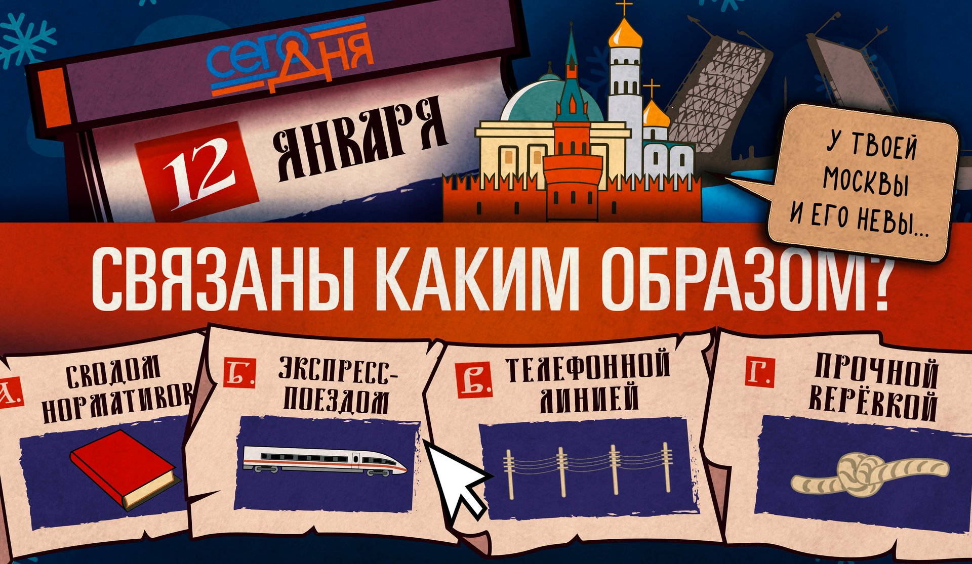 Сегодня по-настоящему зимний праздник — день Cнежной Королевы! Каким образом оказались связаны между собой Москва и Санкт-Петербург в 1898 г.? Отгадай, что случилось «Сего дня»!