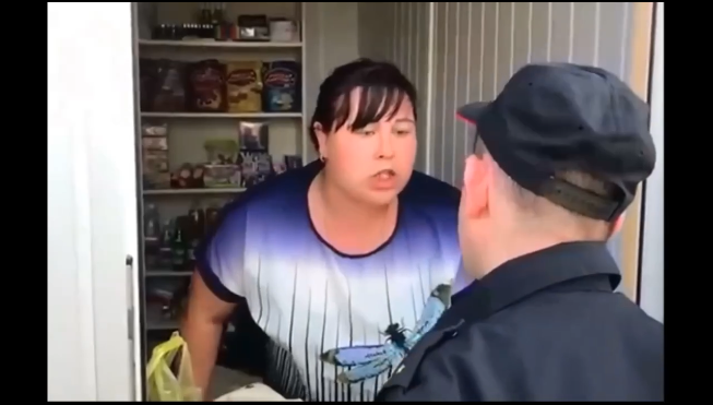 Баба-гром защищает ларек от правоохранителей