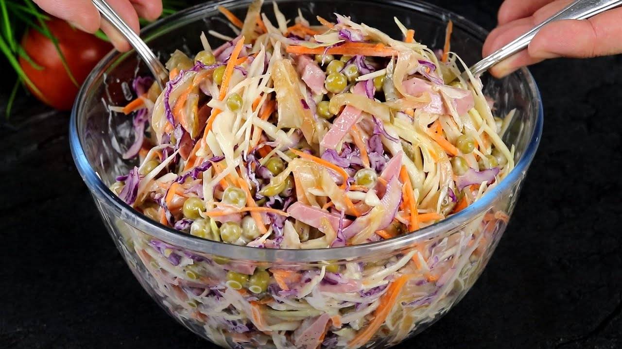 Самый Простой и Вкусный салат из Капусты на каждый день. Готовлю Два раза в день. Вкусные Советы Рецепт: Капуста белокочанная - 200 г Капуста краснокочанная - 200 г Морковь - 1 шт Соленые огурцы - 200 г Колбаса - 200 г Горошек консервированный - 1 банка Майонез - 3 ст.л. Соль по вкусу Черный перец , , , , , , , , , ,
