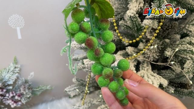 333575 Украшение елочное Виноград с эффектом инея зеленый 16см