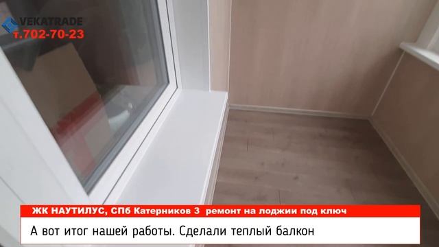 Жилой комплекс Наутилус, Санкт Петербург, Катерников д.3 Выполнены работы по ремонту на балконе: ? Установлено теплое остекление с теплым стеклопакетом и поворотно-откидными створками. ? Замена фасадного остекления в ЖК Наутилус производится без изменения внешнего вида фасада здания методом рама в раму. Это вам не вклейка стеклопакетов, когда стойки остаются холодными и имеются протечки фасадного остекления даже после замены. ? В ЖК Наутилус мы установили качественное и надежное остекление от немецкой компании VEKA. Профиль Века это профиль класса А, сертифицированный для установки детские и лечебные учреждения. ? Далее мы убрали все протечки на балконе ? Следующим этапом мы утеплили балкон пеноплексом и уложили фольгированную изоляцию ? Сделали освещение, розетки и установили теплые полы ? И в конце весь балкон мы обшили пластиковыми панелями, а на пол уложили влагостойкий ламинат, которые выбрал заказчик Все работы по остеклению балкона заняли у наших специалистов всего 4 часа. Утепление балкона, отделка балкона и остекление балкона - наш профиль! Подробнее про эту нашу работу смотрите у нас на сайте https://www.nevskieokna.ru/blog/detail/zhk-nautilus/ или читай в нашей группе ВКОНТАКТЕ https://vk.com/vekatrade?w=wall-40066112_1970 Подборку наших работ в домах Жилого комплекса Философия смотрите на нашем ютуб канале https://www.youtube.com/playlist?list=PLl-3gljCkkOtJ7BacS36ewm8_cdPckCD9 МЫ СДЕЛАЛИ БОЛЕЕ 3500 БАЛКОНОВ ПОД КЛЮЧ. СПИСОК ЖИЛЫХ КОМПЛЕКСОВ С ПОДРОБНЫМИ ФОТО И ВИДЕО ОТЧЕТАМИ НАШИХ РАБОТ ЗДЕСЬ https://www.nevskieokna.ru/zhilye-kompleksy/ Наша компания «VEKATRADE» предлагает вам несколько вариантов ремонта вашего балкона. При заказе сразу нескольких услуг по остеклению. утеплению и отделке балкона или лоджии, вы существенно экономите свои средства. ?Подпишись на наш канал и вступи в нашу группу Вконтакте https://vk.com/vekatrade - получи подарок при заказе наших услуг ? VEKATRADE любые балконы под ключ - остекление\утепление\отделка\объединение. https://www.nevskieokna.ru ? Наше производство и шоурум в г. Санкт-Петербург, ул. автобусная 5 ? Режим работы: Пн-вс: 9:00-22-00; Сб-Вс: 9:00-21:00 ☎️ Звоните нам, мы всегда отвечаем: ? Прием звонков по многоканальным тел: +7 (812) 702-702-3 ********************************************************************* ? Наши работы здесь https://www.nevskieokna.ru/portfolio/ ? Про балконы под ключ здесь https://www.nevskieokna.ru/balkon-pod-klyuch/ ? Про остекление балконов и лоджий здесь https://www.nevskieokna.ru/osteklenie-balkonov-i-lodzhiy/ ? Про замену холодного фасадного остекления на теплое здесь https://www.nevskieokna.ru/balkon-pod-klyuch/ ? Про утепление балконов ключ здесь https://www.nevskieokna.ru/uteplenie-balkonov-i-lodzhiy/ ? Про отделку балконов ключ здесь https://www.nevskieokna.ru/otdelka-balkonov-i-lodzhiy/ Подпишись на наш канал ? – «VEKATRADE. БАЛКОНЫ ПОД КЛЮЧ ». https://www.youtube.com/user/vovankochetov/videos