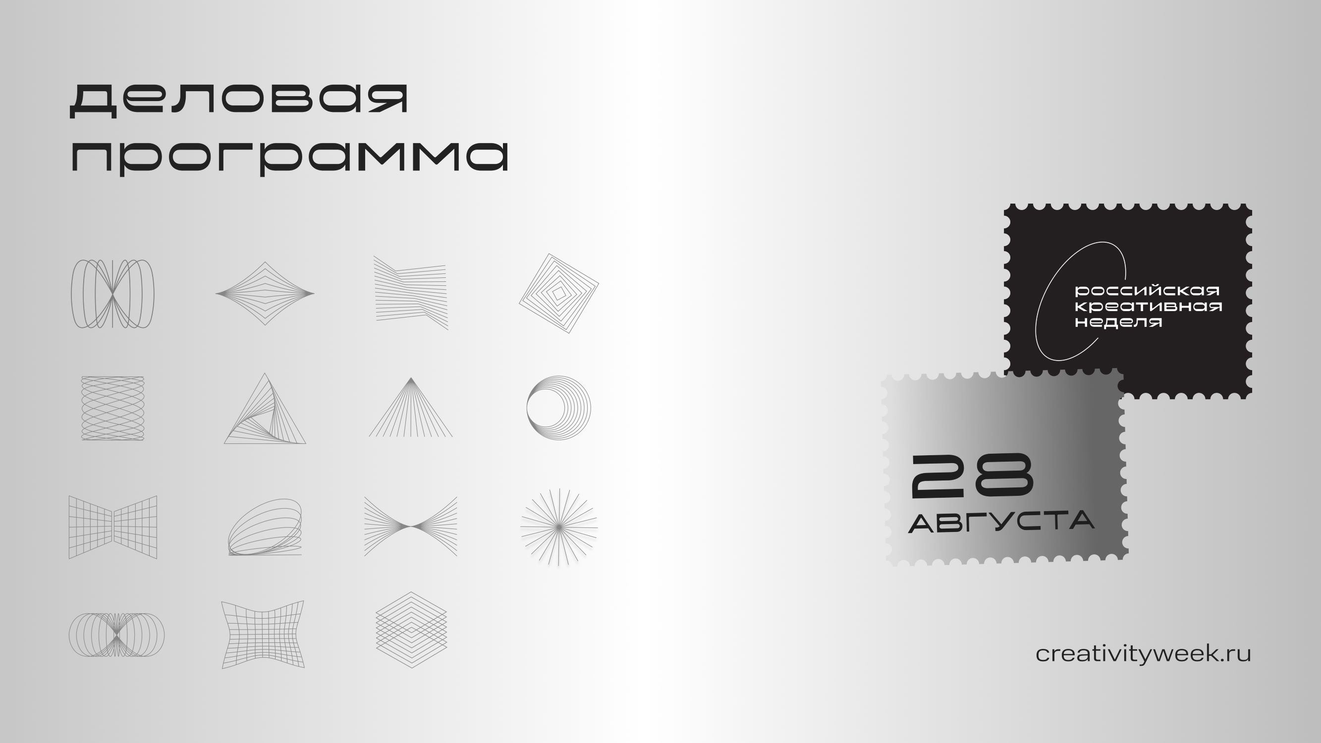 09:00 - Поколение настоящего для устойчивого будущего 12:40 - Лидеры креативного роста. Самые перспективные представители бизнеса по рейтингу «30 до 30» 14:30 - Креативный экспорт. Встреча запада и востока и место россии в глобальной гонке 16:20 - Кино после голливуда: инсайт-сессия в рамках российской креативной недели 18:10 - Безумное чаепитие с искусственным интеллектом (Seldon)