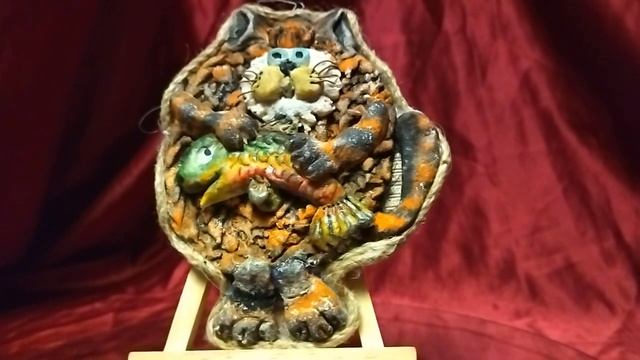 Панно из соленого теста "Кот-рыбак"